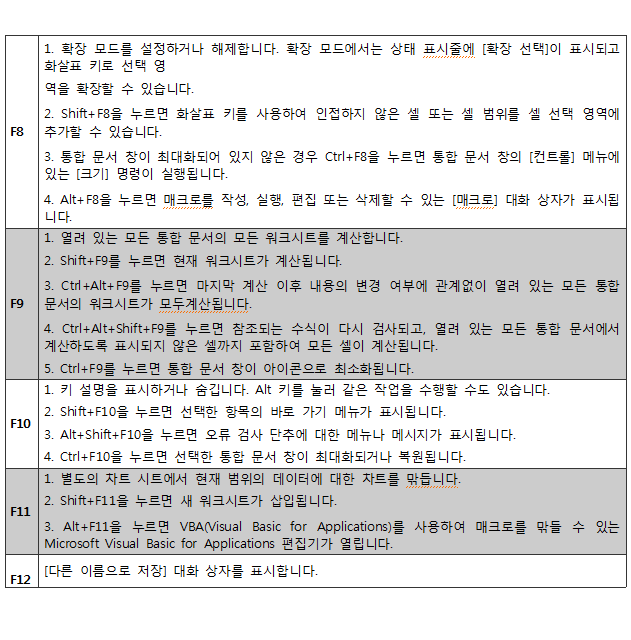 이 표스팅 하나면 웬만한 엑셀 단축키는 마스터할 수 있다고 봅니다.
