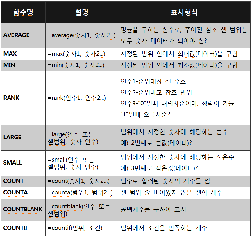 그래서 오늘 준비한것은 바로 가장깔끔한 엑셀 함수 정리 입니다!